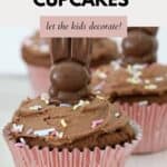 - Decorate: Spread or pipe the buttercream over cooled cupcakes. Gently press a mini chocolate bunny into the top and finish with sprinkles (optional).